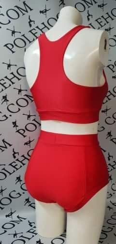 Bright red colours high waisted fitted pant.