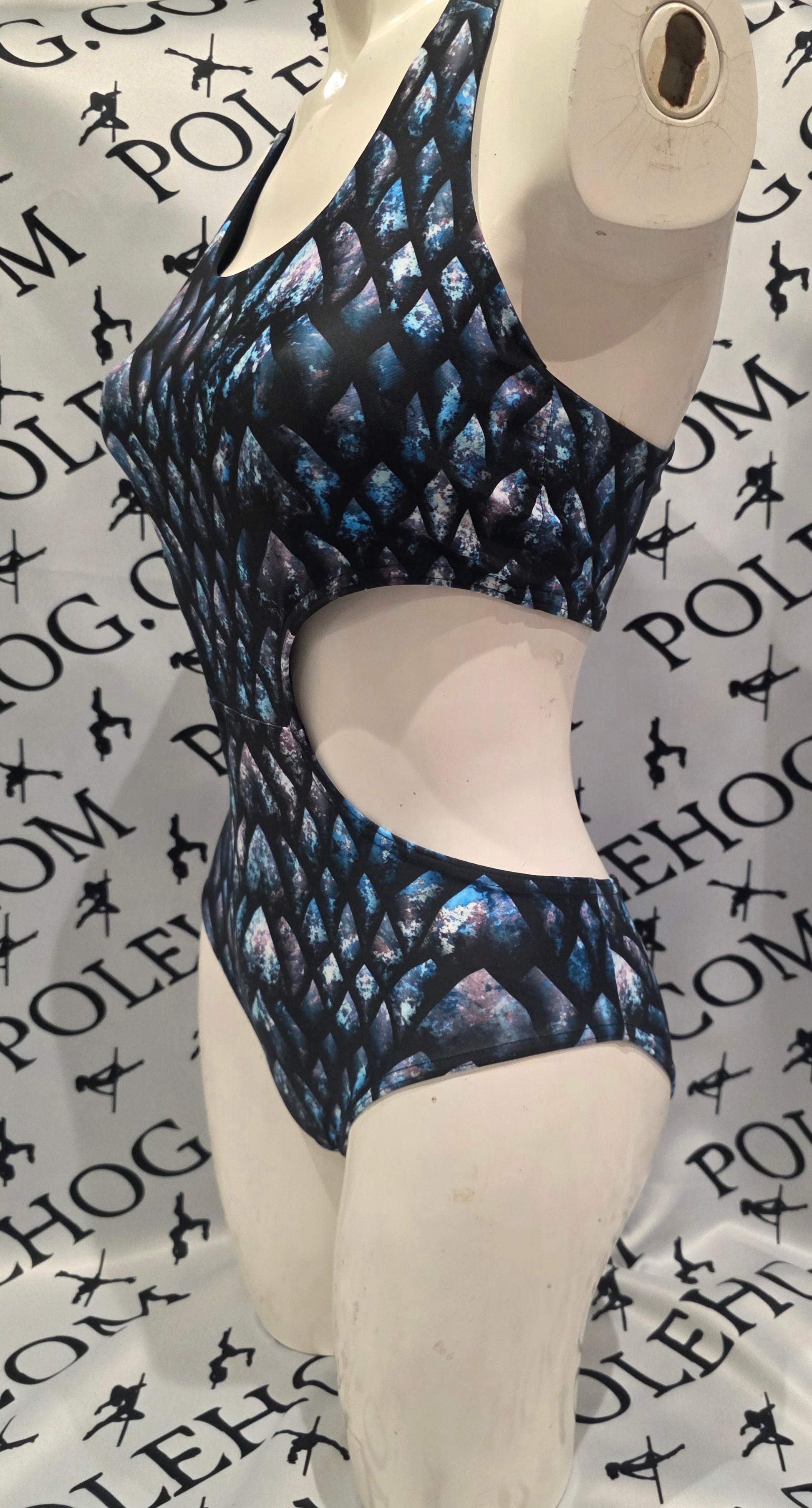 This printed lycra x back bodysuit is the perfect addition to any polewear collection. Designed with an X back, it offers a stunning silhouette and exceptional support for all your pole fitness routines. Made with our beautiful printed lycra fabric adding a touch of glamour to your workout.